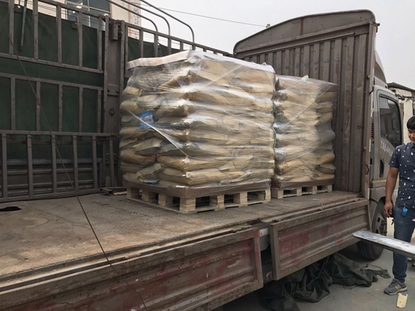 發(fā)往山東的藍(lán)原料裝車發(fā)出
