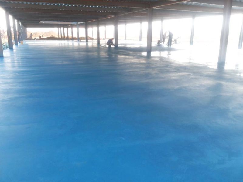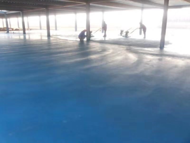 藍(lán)色金剛砂耐磨地坪施工現(xiàn)場